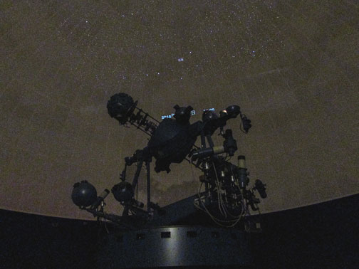 投影機を手動操作し解説者がリアルタイムで話題に合わせ星空紹介。生解説ならではの臨場感が魅力