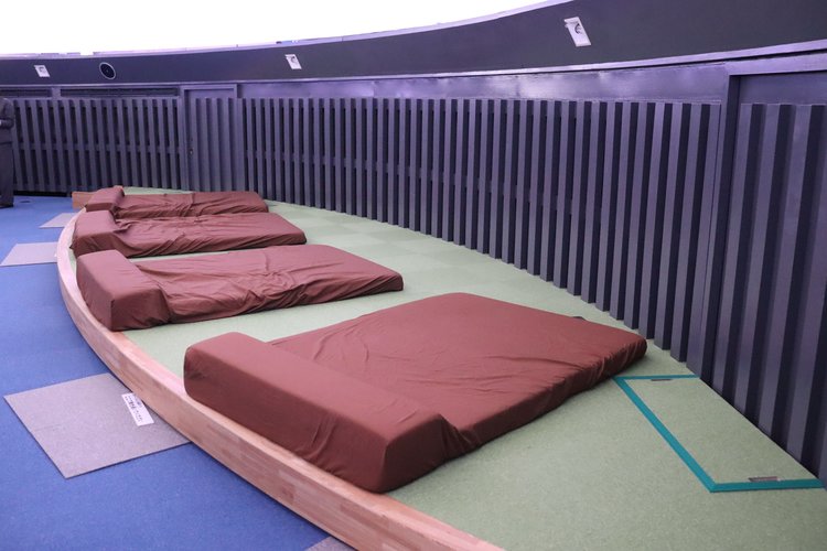 - 前方の多目的スペースには「寝ころびシート」が4つ設置されており、寝転んで星空を見上げる形式の席あり